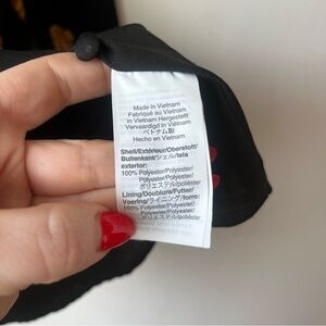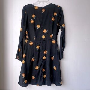 Madewell Black Floral Lilyblossom Button-Front Dress in Floating Florets 4. Made of lustrous satin jacquard, this flattering dress has all kinds of vintage-inspired details: a V-neck, a pretty floral print and tiny covered buttons. A piece that can easily go from work to party mode. Waisted. Poly. pit to pit 19", waist is 15" across, length 35". tiny blemish at the end of the zipper.