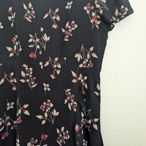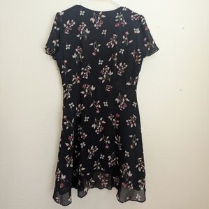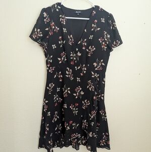 Chic mini dress with floral design. V-neckline and short sleeves, chiffon, Perfect for any outing.