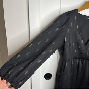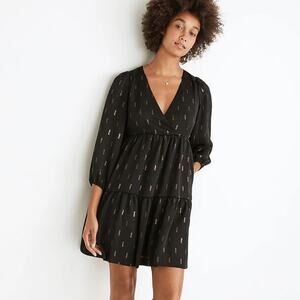 Madewell Black & Gold Metallic Jacquard Faux-Wrap Tiered Mini Dress Size XXS
