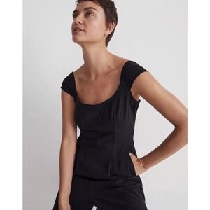 Madewell Black Grace Cap Sleeve Wide Leg Crop Jumpsuit NWT Size 0