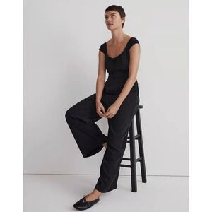 Madewell true Black Grace Cap Sleeve Wide Leg Crop Jumpsuit NWT Size 0
