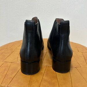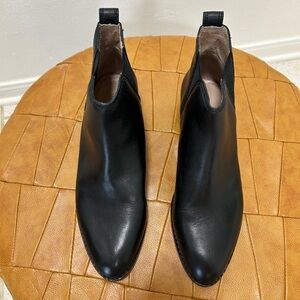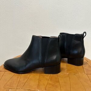 Brand new and never worn! Beautiful black leather ankle boots with an almond toe. Low heel for comfortable wear all day!