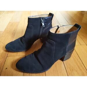 Madewell Black Leather Ankle Boots Side Zip Block Heel Size 6.5 Worn Condition