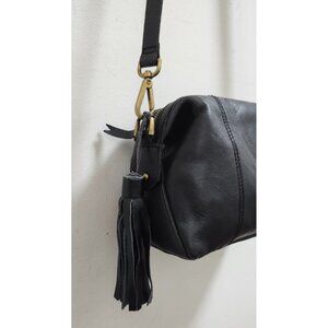Madewell Black Leather Crossbody Bag Tassel Adjustable Strap Brass Hardware Soft Pebbled