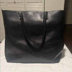 Madewell Elegant black leather tote bag with sleek design. Perfect for everyday use.