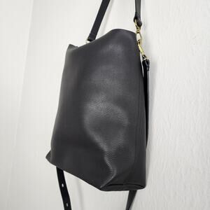 Madewell The Transport Bucket Bag Black Leather NWT Genuine Leather Crossbody Shoulder Bag Work Purse Minimalist Capsule Wardrobe Neutral Style Everyday Bag Versatile Black Bag