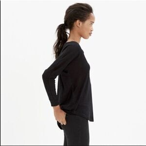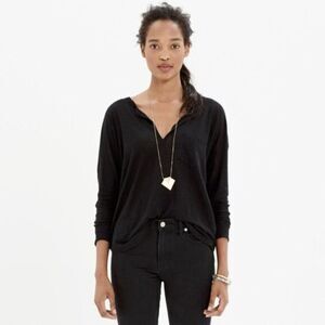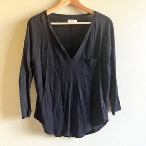 Madewell Black Linen Heathered Telegraph Tee Top V Neck Womens Size S