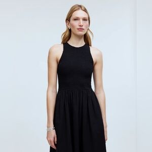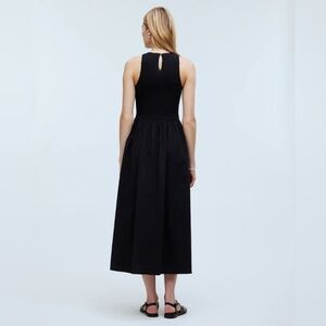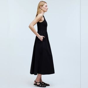 Elegant black midi dress. Sleeveless design. Perfect for any occasion.