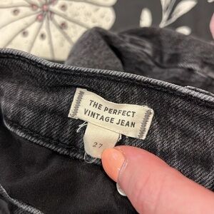 Good condition women’s Madewell black perfect vintage Jean. Size 27. 99% cotton, 1% elastane with small amount of stretch. Waist measures 14.5 inches flat. 27 inch inseam.