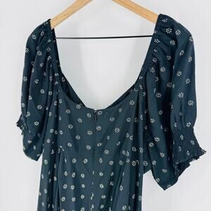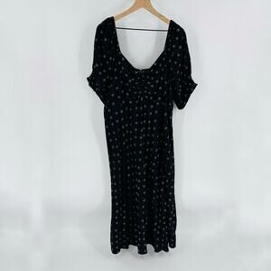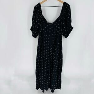 Madewell Black Petite Sweetheart Puff-Sleeve Midi Dress in Stardot Size 20W