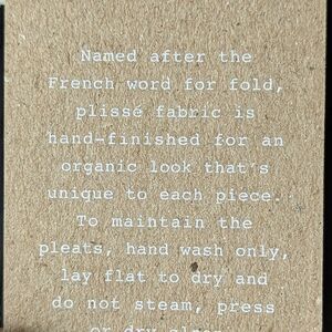 Please look after your plissé: to maintain the pleats, hand wash only, lay flat to dry and do not steam, press or dry clean.