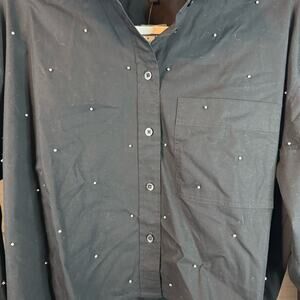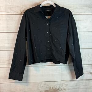 Madewell Black Poplin Embellished Cropped Button-Up Shirt Size Large
