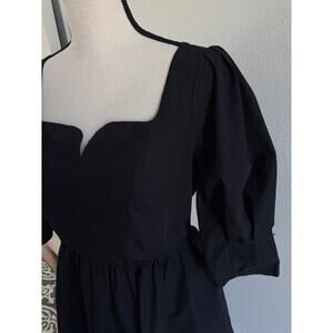 Madewell Black Poplin Puff-Sleeve Sweetheart Neckline Mini Dress size 4