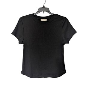 Madewell Black Regenerative Fitted Soft Cotton Short Sleeve Ribbed Crewneck Tee