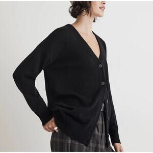 Madewell Black Relaxed V-Neck Button Front Wool Blend Cardigan Sweater Size XXS
