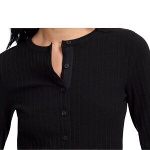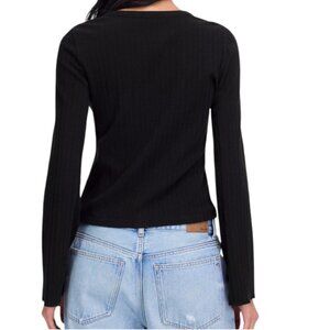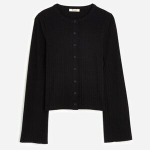 Madewell Black Ribbed Button-Front Long Flared Sleeve Cardigan Women’s Size M