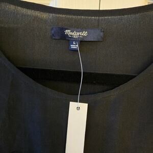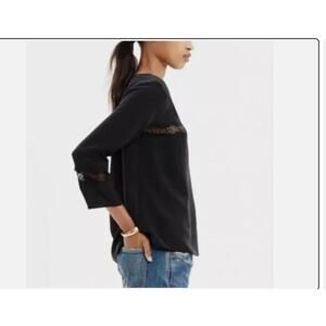 Madewell Black Silk Lace Inset Top 100% Silk Black Minimalist Whimsy Goth Office