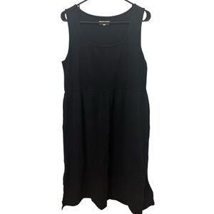 Black sleeveless tank dress. Pull over. 100% cotton. Textured fabric.