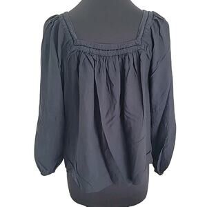 Madewell Black Square Neck Long Sleeve Top M Boho Cottagecore Goth EUC