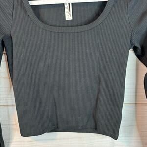 Madewell Black Square-Neck Long-Sleeve Crop Tee in Sleekhold Size Small