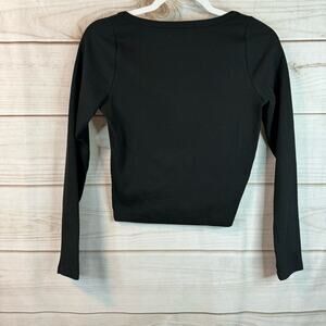 Madewell Black Square-Neck Long-Sleeve Crop Tee in Sleekhold Size XS