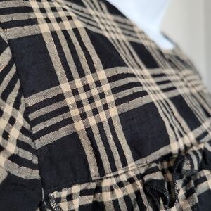 Madewell Black Tan Cream Plaid Short Sleeve Blouse Ruffle Trim Small Holiday Top