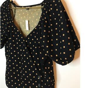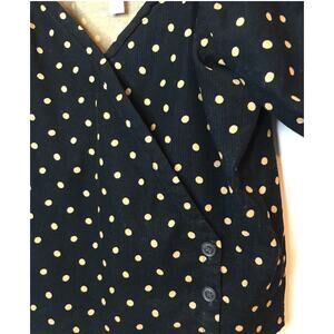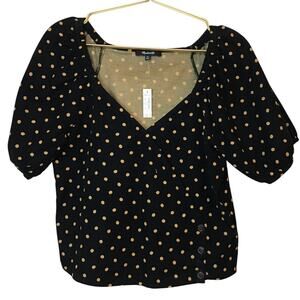Madewell Black Tan Oval Dot Puff Sleeve Corduroy Wrap Top XS