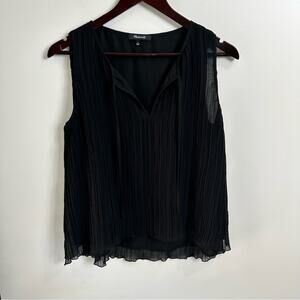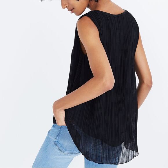 Tie-neck tank is crafted of breezy plissé fabric (fun fashion fact: the name comes from the French word for pleated).