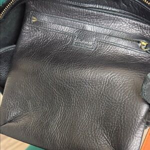 Stylish black tote bag featuring brown straps. Perfect for everyday use.