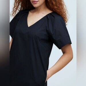 Madewell Black V-Neck Mini Dress Minimalist simple pockets Poplin cotton