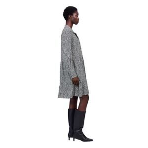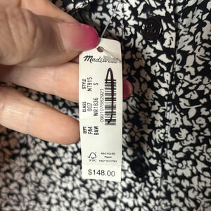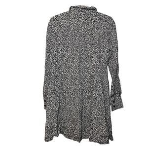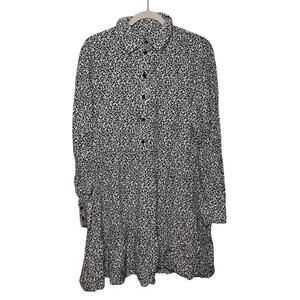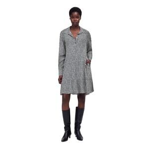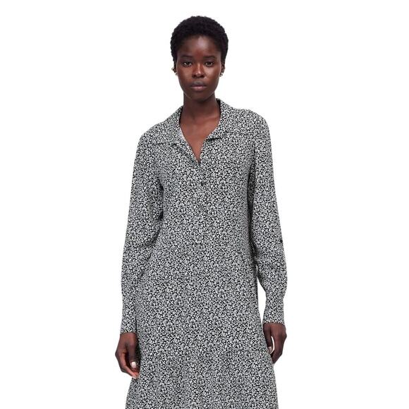 Madewell Black White Floral Tiered Mini Dress Long Sleeve Collared S NWT