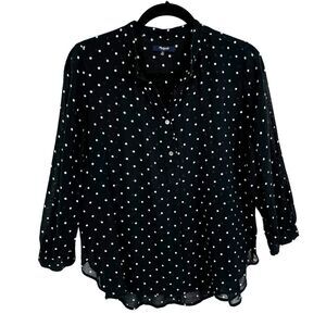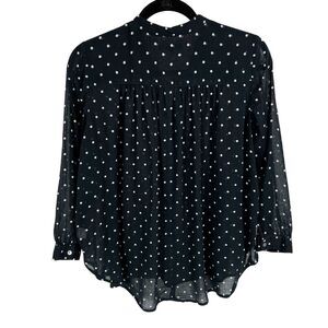 Madewell Black White Polka Dot Shirred 3/4 Sleeve Popover Peasant Blouse Medium