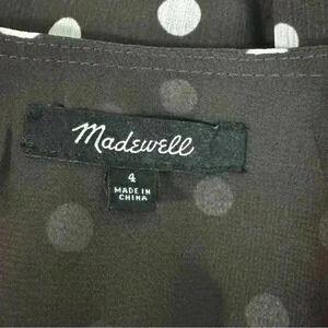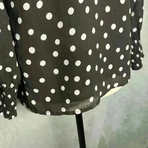 Madewell Black & White Polka V-Neck Long Smocked Sleeve Pullover Blouse Size 4
