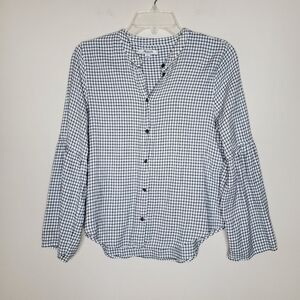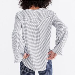 Madewell Black & White Windowpane Gingham Buttton Front Flared Bell Sleeve Shirt