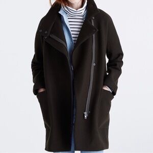 Black, Made of a warm wool blend, Sleek leather trim, Slightly oversized fit., 80% Wool, 20% Nylon, Lining: 100% Acetate,