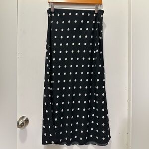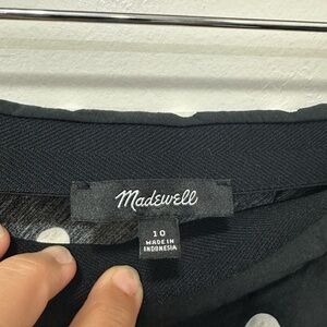 Elevate your evening look with this knee-length skirt from Madewell, featuring a chic asymmetrical design and a stylish slit. The classic black and white color palette makes it perfect for cocktail parties or a night out. Crafted with attention to detail, this skirt combines elegance with a modern twist. Left side slit.