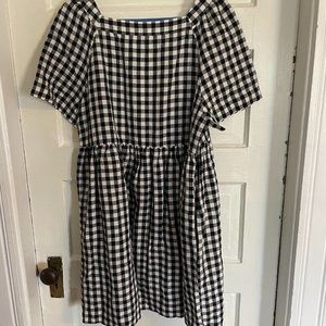 Chic gingham pattern. Square neckline. Short sleeves. Perfect for casual outings.