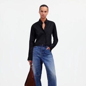 Madewell Black collared relaxed fit blouse size Medium in EUC!