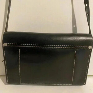 Authentic madewell Black leather crossbody handbag with silver tone hardware main compartment 1 open pocket at interior wall leather lining minor scratches please check all photos hight 6” width 9.5” depth 1.75” strap drop 21” adjustable Bag dimensions are based on approximate measurements.