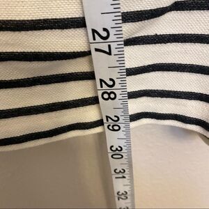 Madewell Tie-Shoulder Romper in black and cream stripe. Features an elastic waist for definition and lined contrast pockets at hip. Worn only once or twice. Excellent condition. 69% cotton, 31% poly