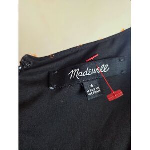 Madewell Black w/Bronze Metallic Detail Faux Wrap A-Line Short Sleeve Dress sz 6