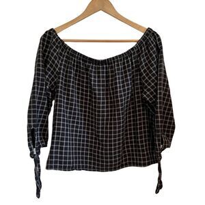Madewell Black and White Grid Plaid Off the Shoulder Top size M