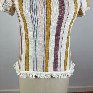 Excellent used condition. Size XS. No rips or stains. A tee-style fringed sweater in colorful stripes inspired by a