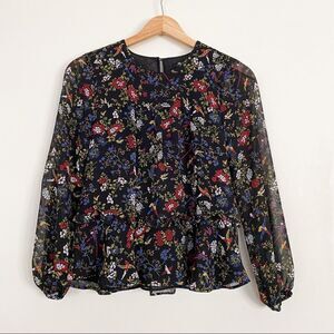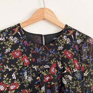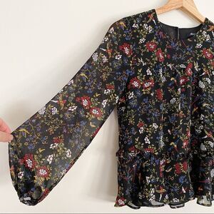 Madewell Sheer Sleeve Ruffle Peplum Top Floral
