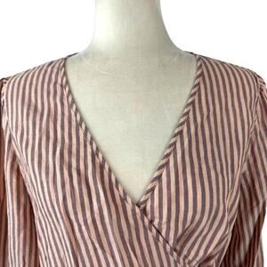 Madewell Blouse Women's Puff-Sleeve Peplum Wrap Top in Stripe Medium Mc794