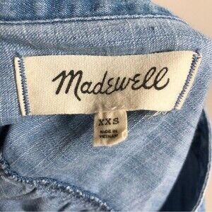 Madewell Blouse Womens Size XXS Blue Chambray Short Sleeve V Neck Oversized Boxy