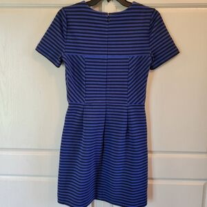 Madewell Blue Black Striped Textured Short Sleeve Dress