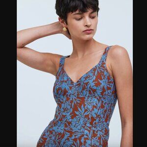 Madewell Blue Brown Floral 100% Linen Sweetheart Mini Dress 4. Coming in our favorite 100 percent linen, this floral-print mini dress drapes beautifully on the body. With thin straps and a sweetheart neckline, it's the perfect garden party piece.