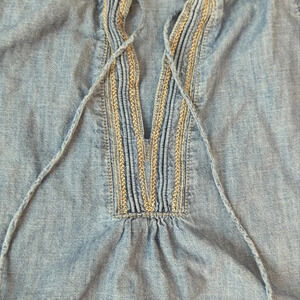 Madewell Blue Denim Chambray Embroidered Tie Neck Blouse Top Size S Boho