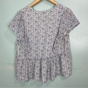 Chic floral blouse with a V-neck. Features a flowy silhouette. Perfect for casual wear.